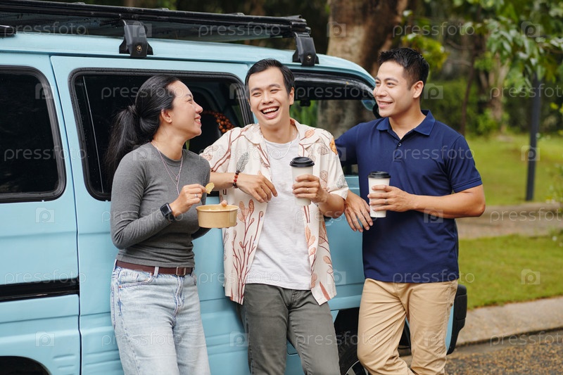 Счастливые друзья, отдыхающие после путешествия