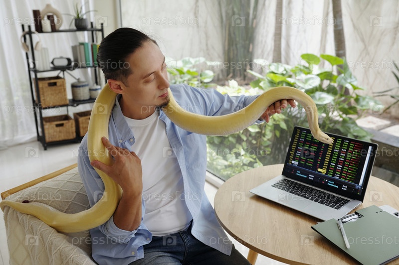 Наслаждаться качественным временем с домашним змеем рядом со экраном ноутбука