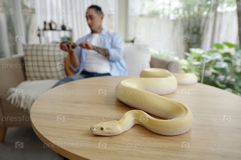 Расслабьтесь в помещении с большой слоновой костью змеи на столе
