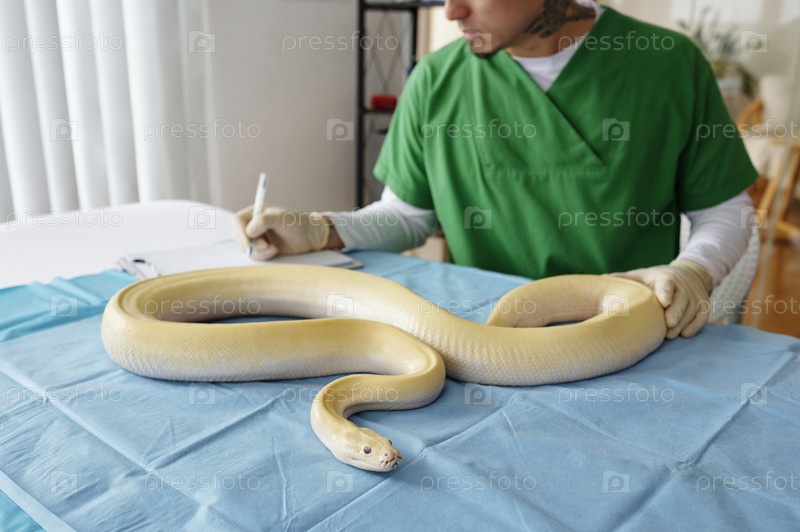 Изучение большой желтой змеи на экзаменационном столе