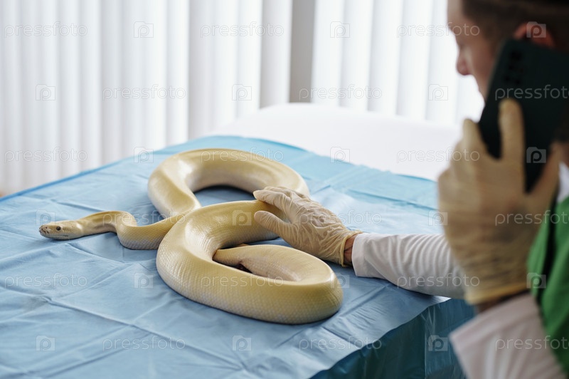 Обращение с альбино питоном в ветеринарной клинике