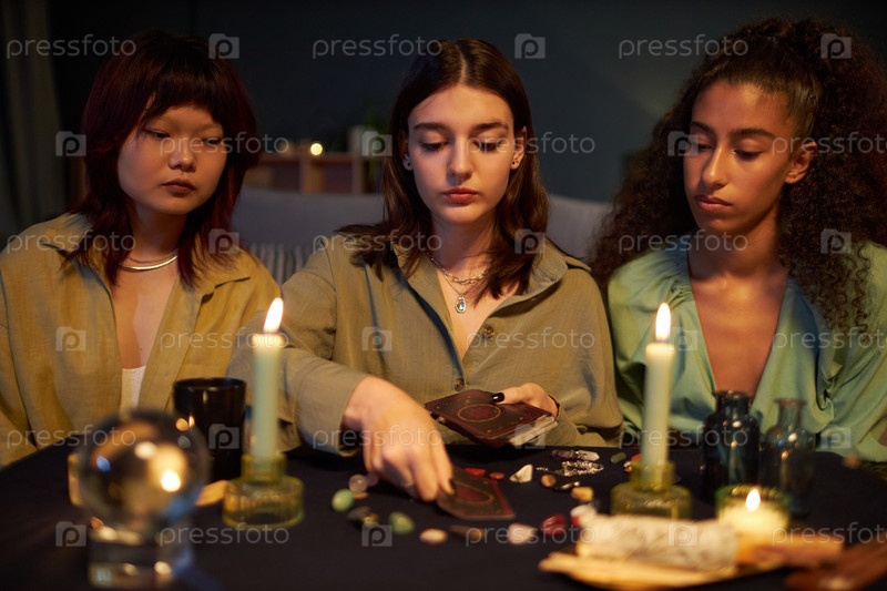 Мультиэтнические девочки, читающие карты Таро