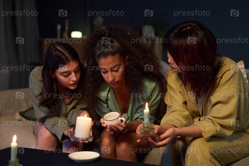 Три девушки предсказывают будущее во время вечеринки с магической тематикой