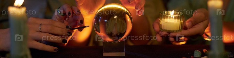 Девочки практикуют предсказание судьбы с помощью заголовка кристаллического шара