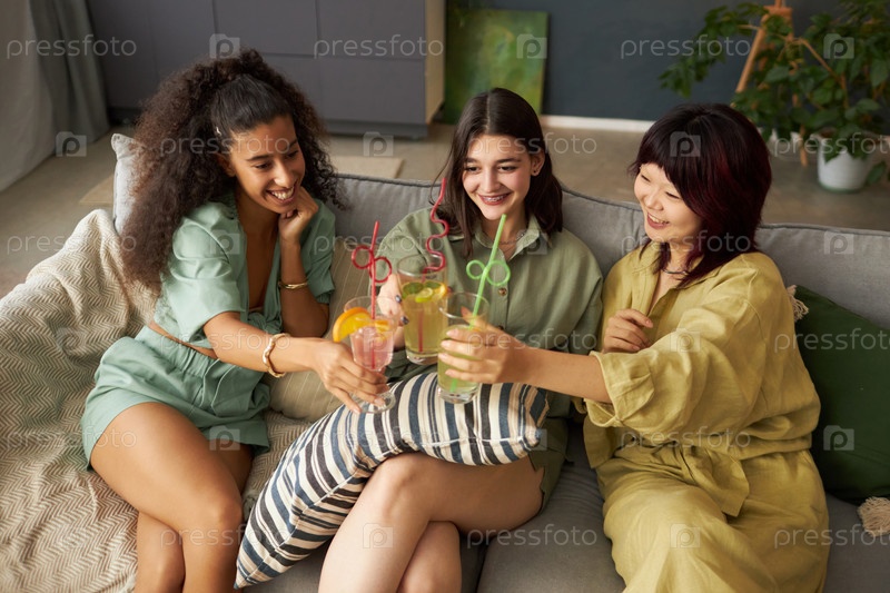 Три подруги-женщины, стучащие стаканами