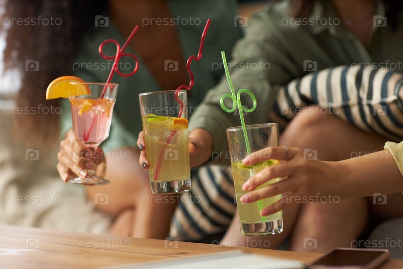 Непризнанные девушки берут бокалы с газированными напитками