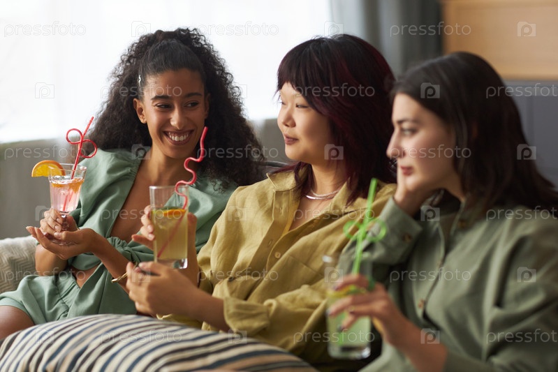 Девушки поколения Z отдыхают в гостиной во время вечеринки