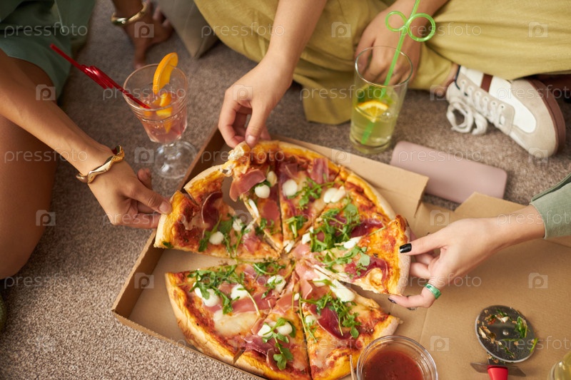 Непризнанные девушки, берущие кусочки пиццы