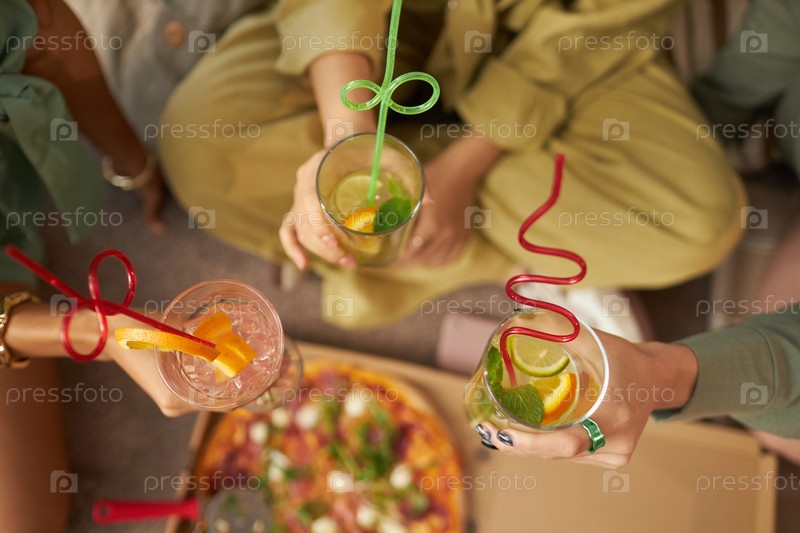 Непризнанные три девушки, устраивающие вечеринку дома