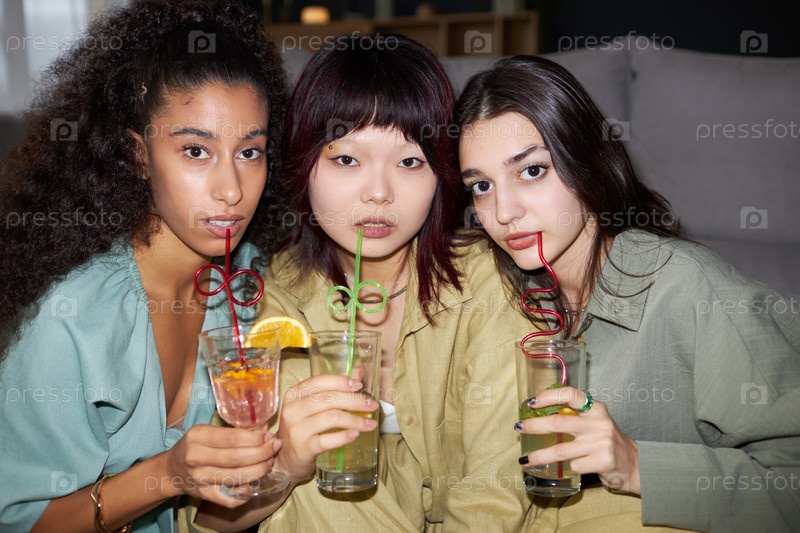 Три разных девушки во время вечеринки дома