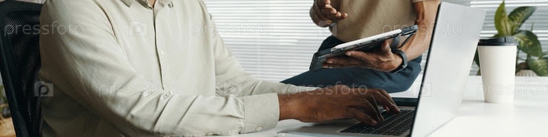 Коллеги, работающие на рабочем месте в офисе