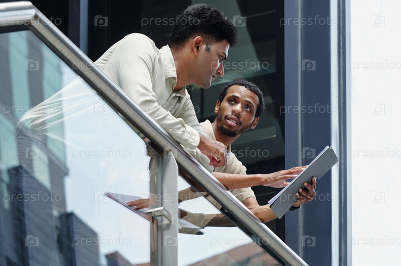 Коллеги обсуждают бизнес-план в офисе