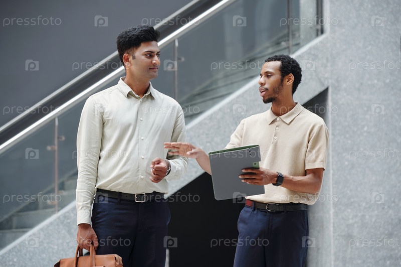 Бизнесмен обсуждает отчет с коллегой