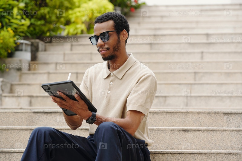 Использование цифровых планшетов на открытом воздухе Человек