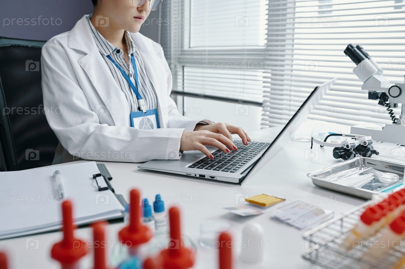 Медицинский исследователь, проводящий лабораторную работу с микроскопом