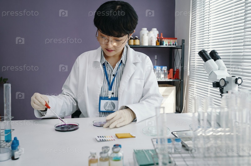 Проведение научных исследований в лаборатории с помощью микроскопа
