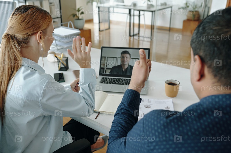 Деловые совещания по видеозвонку в современной офисной обстановке