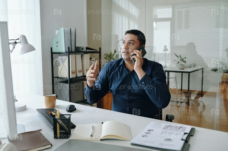 Бизнесмен разговаривает по телефону в современной офисной обстановке
