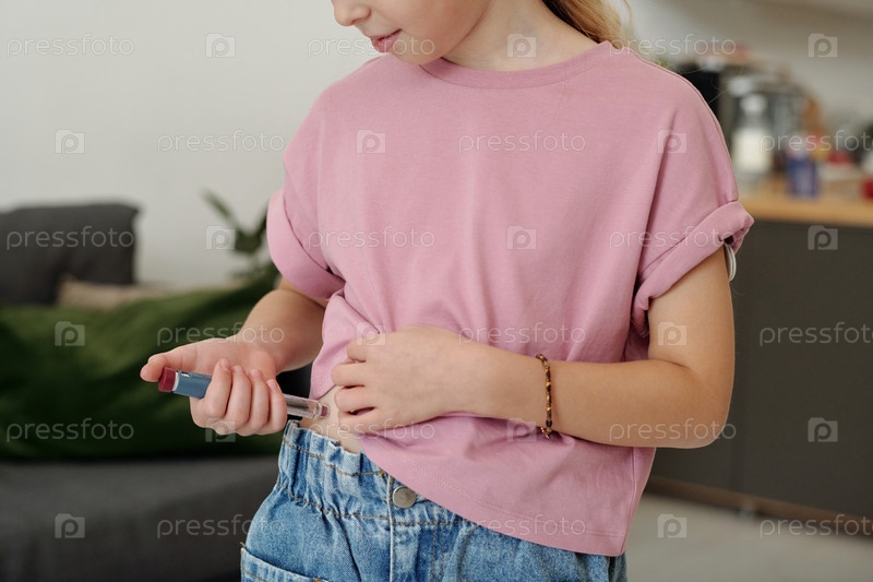 Девушка, вводящая инсулин в живот