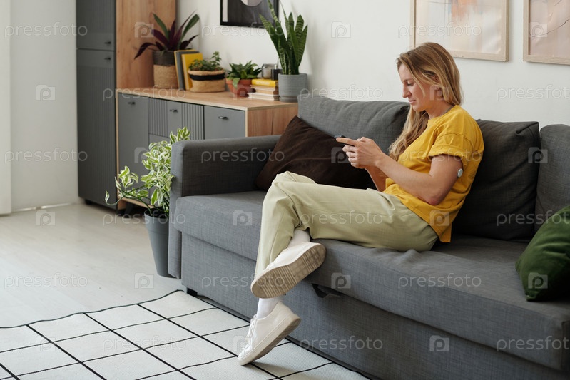 Женщина контролирует уровень сахара в крови с помощью датчика на руке
