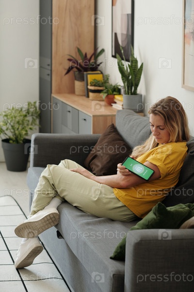 Женщина с диабетом самостоятельно проверяет глюкозу с помощью устройства CGM