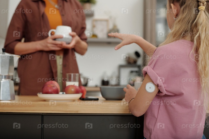 Девочка с диабетом разговаривает с матерью на кухне