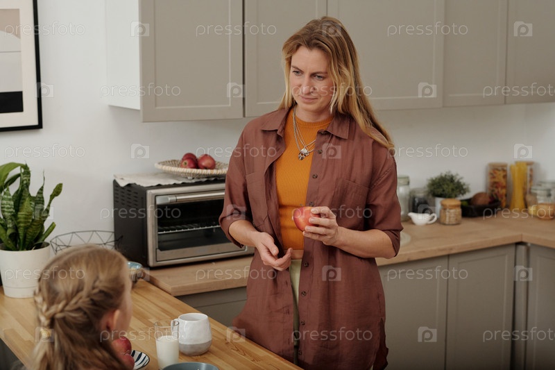Мать разговаривает с дочерью на кухне