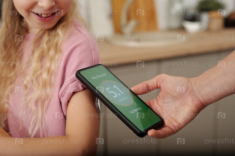 Улыбающаяся девочка с диабетом проводит регулярные осмотры