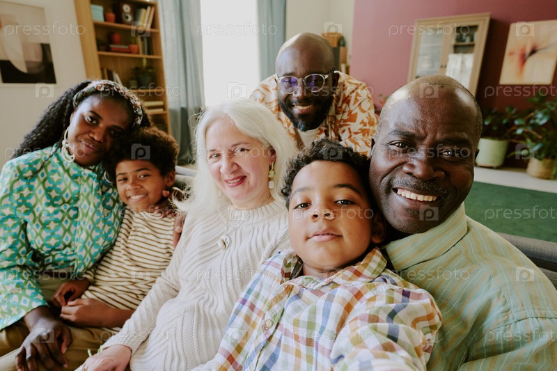 Маленький мальчик делает селфи со своей прекрасной семьей