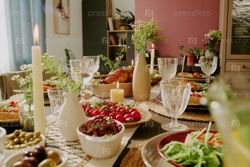 Перекусы и свежие овощи на столе
