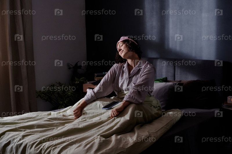 Женщина, растягивающая свое тело в постели