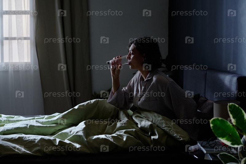 Женщина, принимающая глоток воды утром