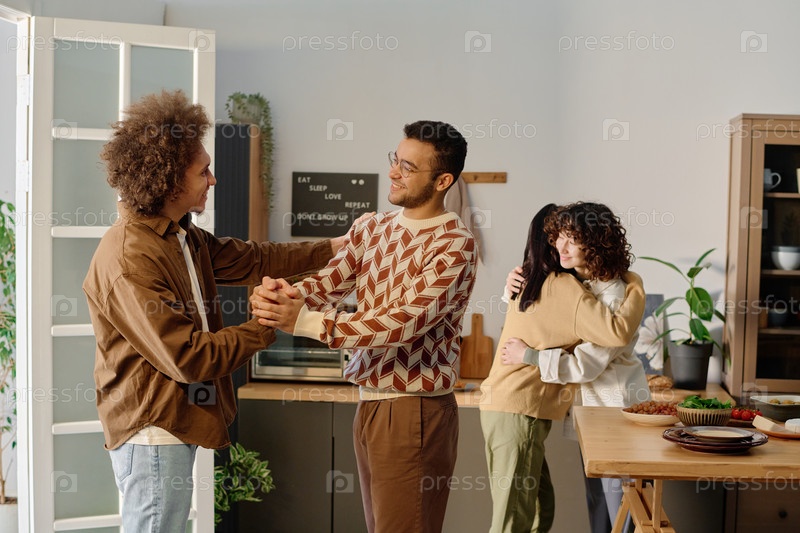 Бирациальные старые друзья братан рукопожатие в квартире