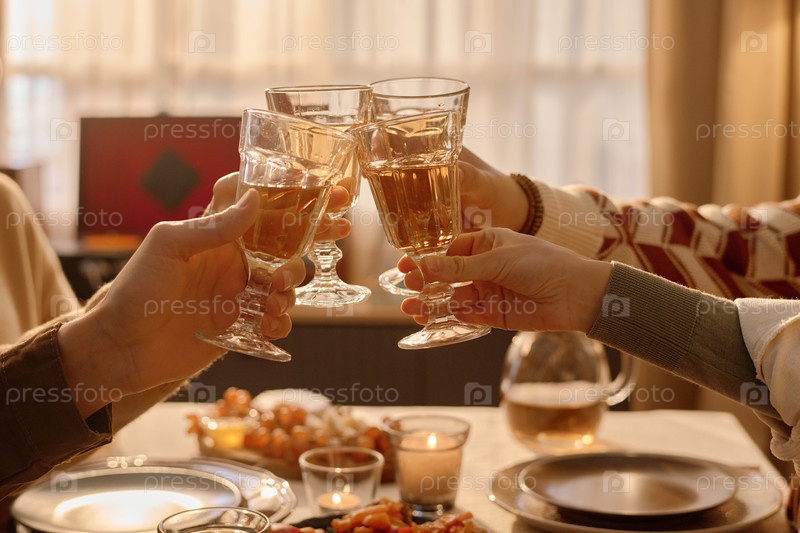 Друзья, стучащие стаканами за столом