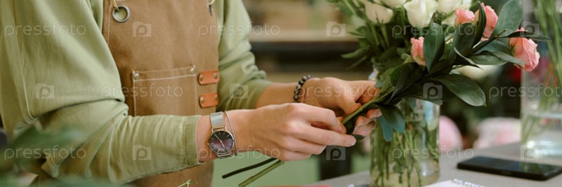 Заголовок с Женщина, делающая букет