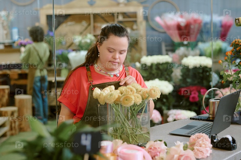 Женщина, считающая цветы в вазе
