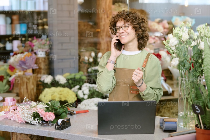 Цветочник улыбается во время беседы