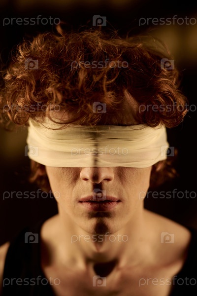 Непризнанный мужчина с повязкой на глазах