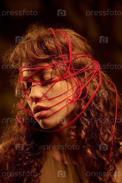 Женщина с красными нитями