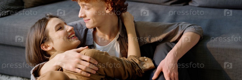 Заголовок с парой обнимающихся на полу
