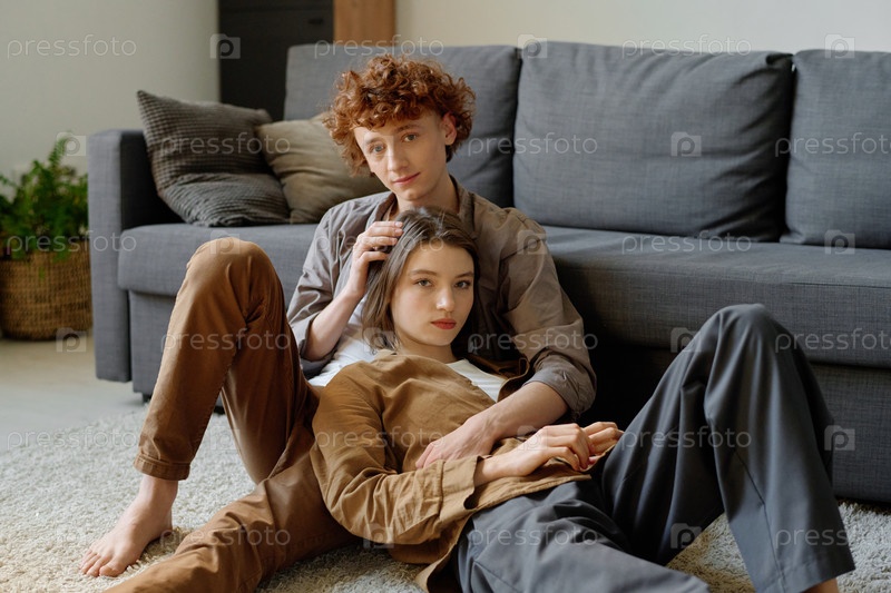 Молодая пара позирует для портрета