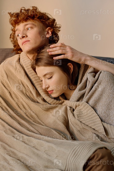 Мужчина обнимает жену и гладит ее голову
