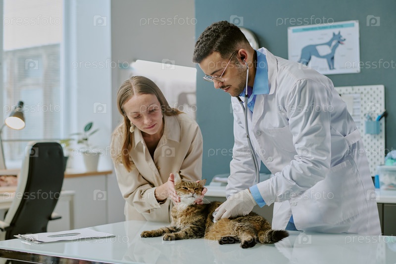 Обследование кошачьего пациента в ветеринарной клинике