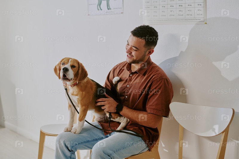 Портрет улыбающегося мужчины, держащего Бигла
