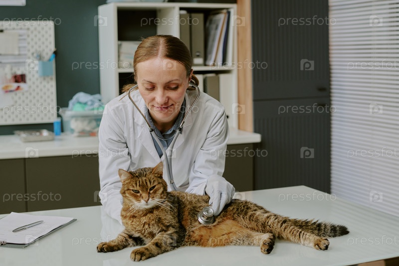 Ветеринар проверяет здоровье расслабленной домашней кошки
