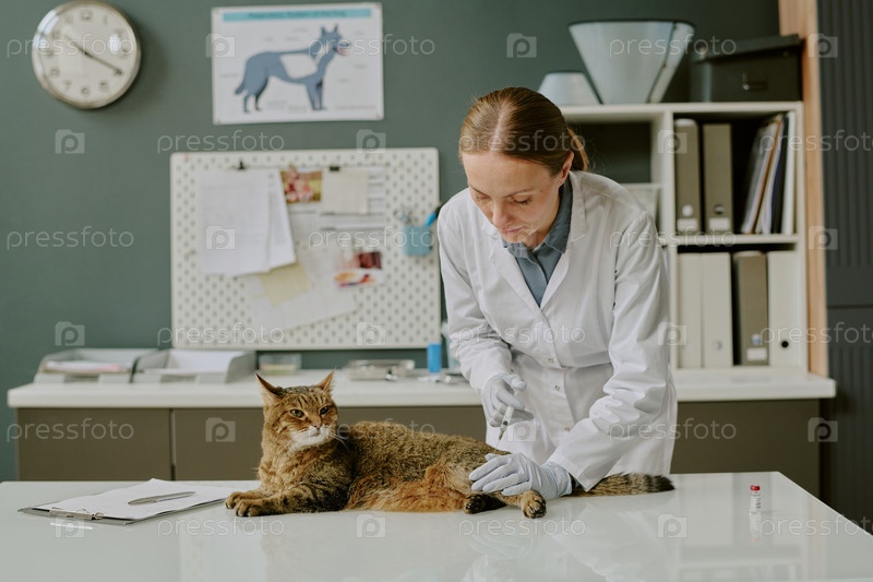 Ветеринар осматривает кошку в медицинском кабинете
