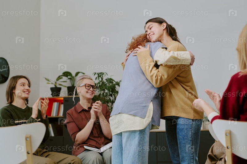 Празднование дружбы во время групповой встречи в уютной комнате
