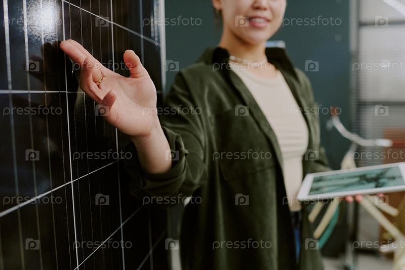 Женщина демонстрирует технологию с устройством в руке