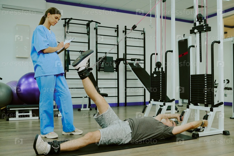 Физиотерапевт молодого взрослого оценивает способности пациента
