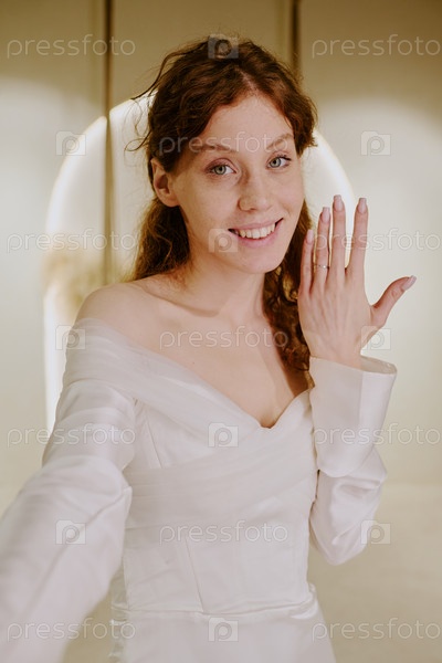 Сельфи женщины, показывающей обручальное кольцо